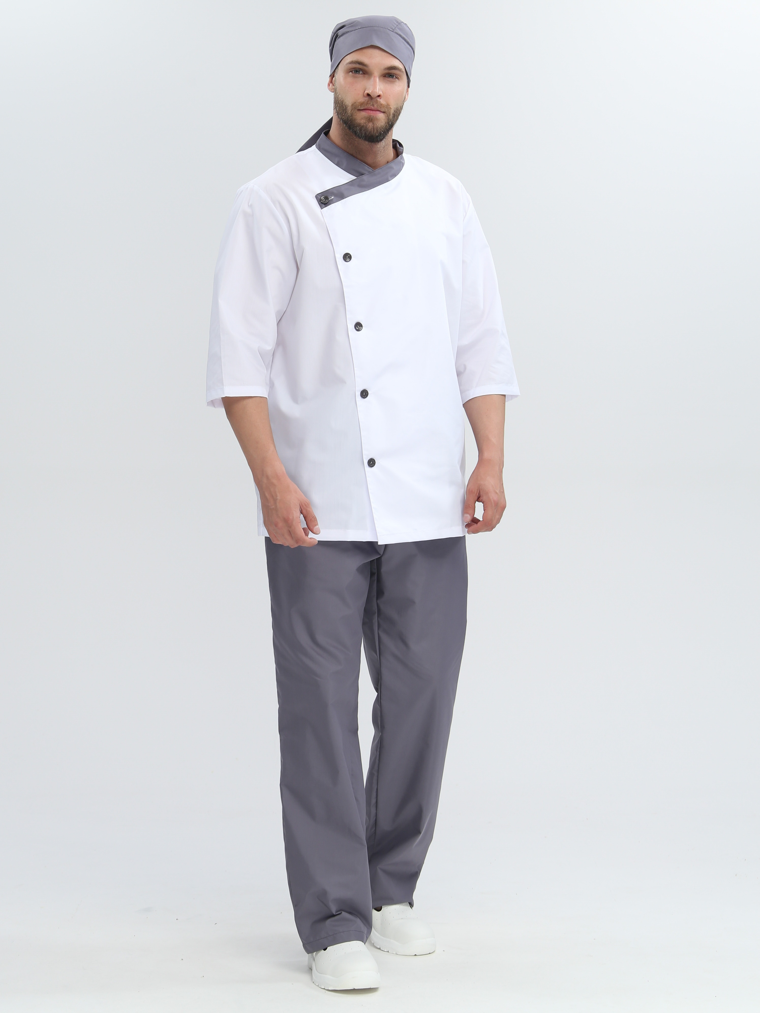 Поварские костюмы для профессиональных кухонь — форменная одежда для шеф-поваров, поваров, кондитеров и технологов пищевого производства. Костюмы состоят из куртки с двубортной застёжкой и брюк свободного кроя. Ткани выдерживают многократную стирку при температуре до 85°C, устойчивы к пятнам и брызгам, быстро сохнут. Модели отличаются воздухопроницаемостью, что важно при работе у плиты. Доступны в классическом белом цвете, а также в чёрном и цветных вариантах. Соответствуют санитарным нормам для предприятий общественного питания. Доставка по России от SIZ-ON.